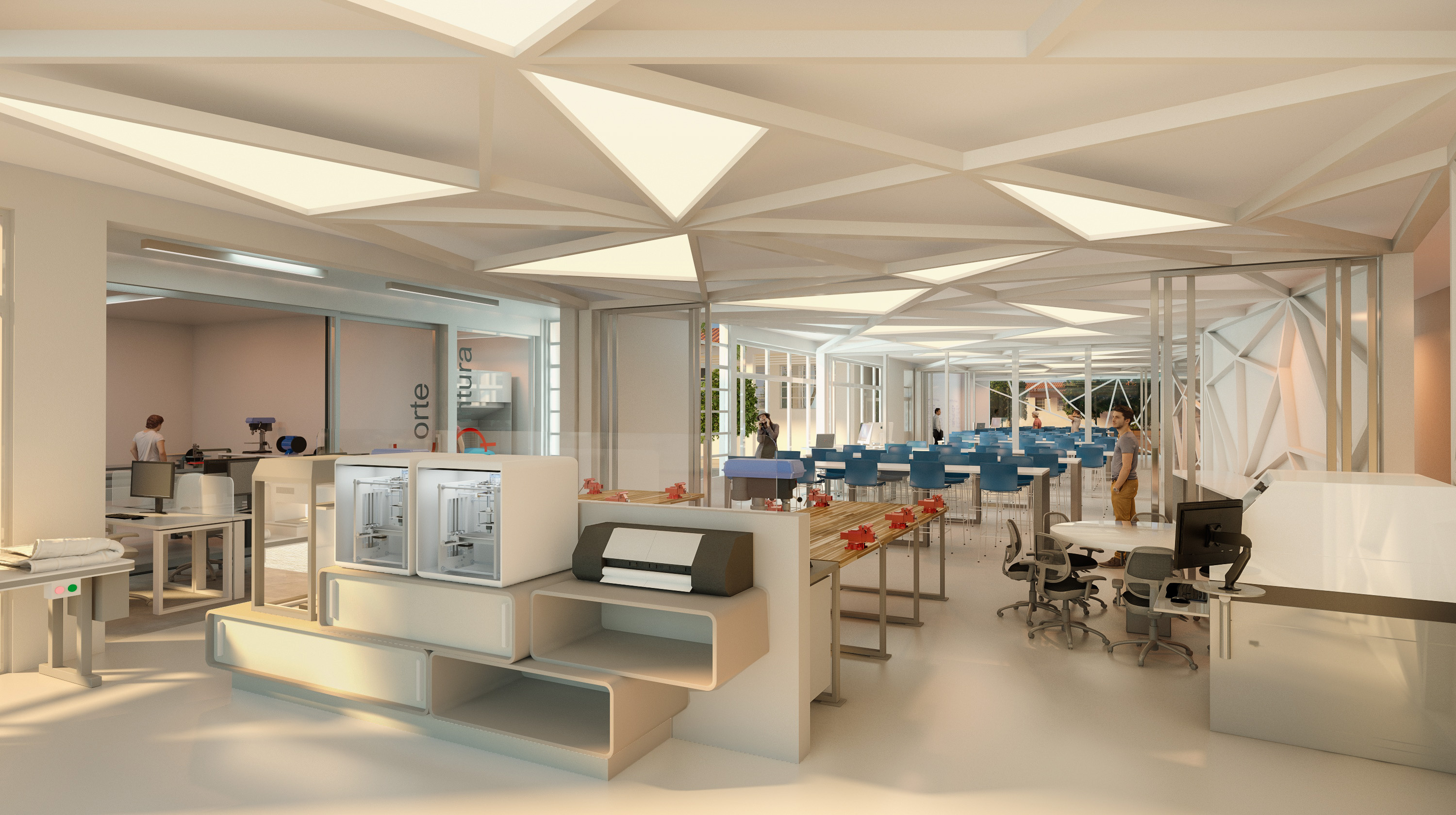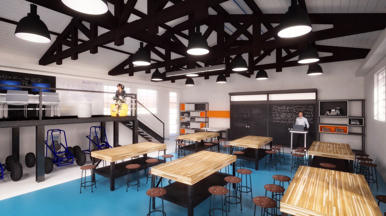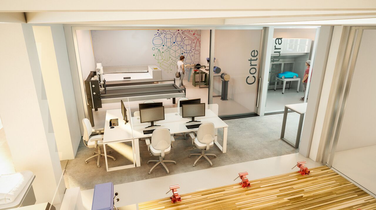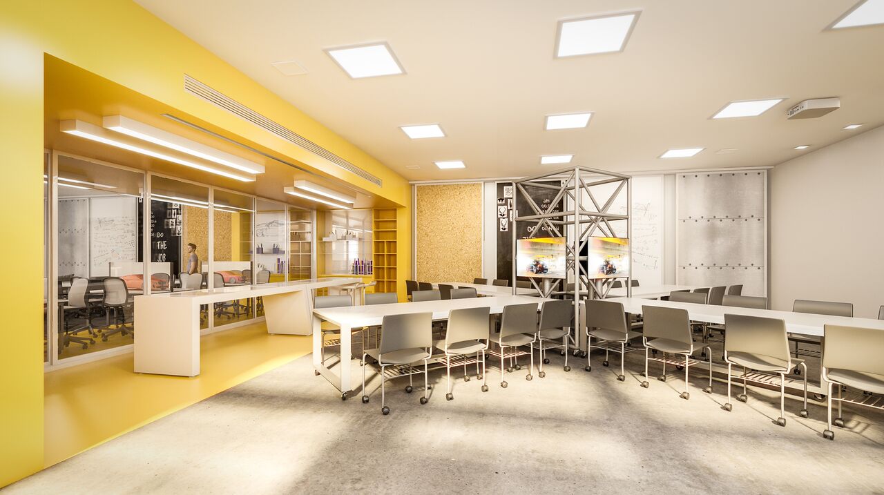 • MAKER LAB – os alunos contarão com uma área de aproximadamente 200m², onde poderão trabalhar com impressoras 3D que imprimirão objetos de pequeno, médio e grande portes, incentivando-os a pensarem ‘fora da caixa’, a serem criativos e perceptivos ao colocarem a mão na massa;